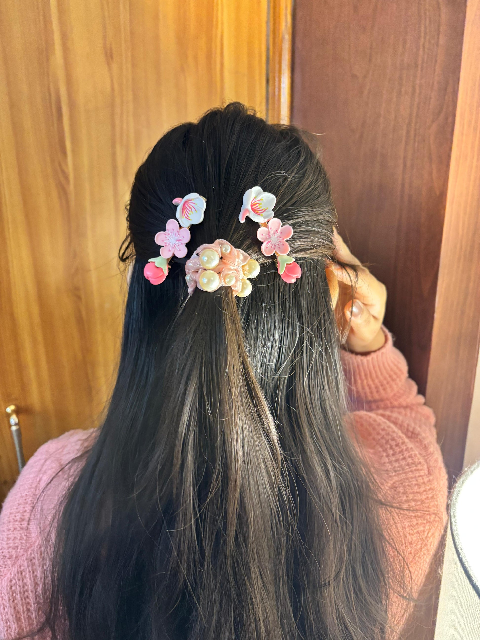 - Pink flower hair clips (pair) β Translucent pink floral hair accessories