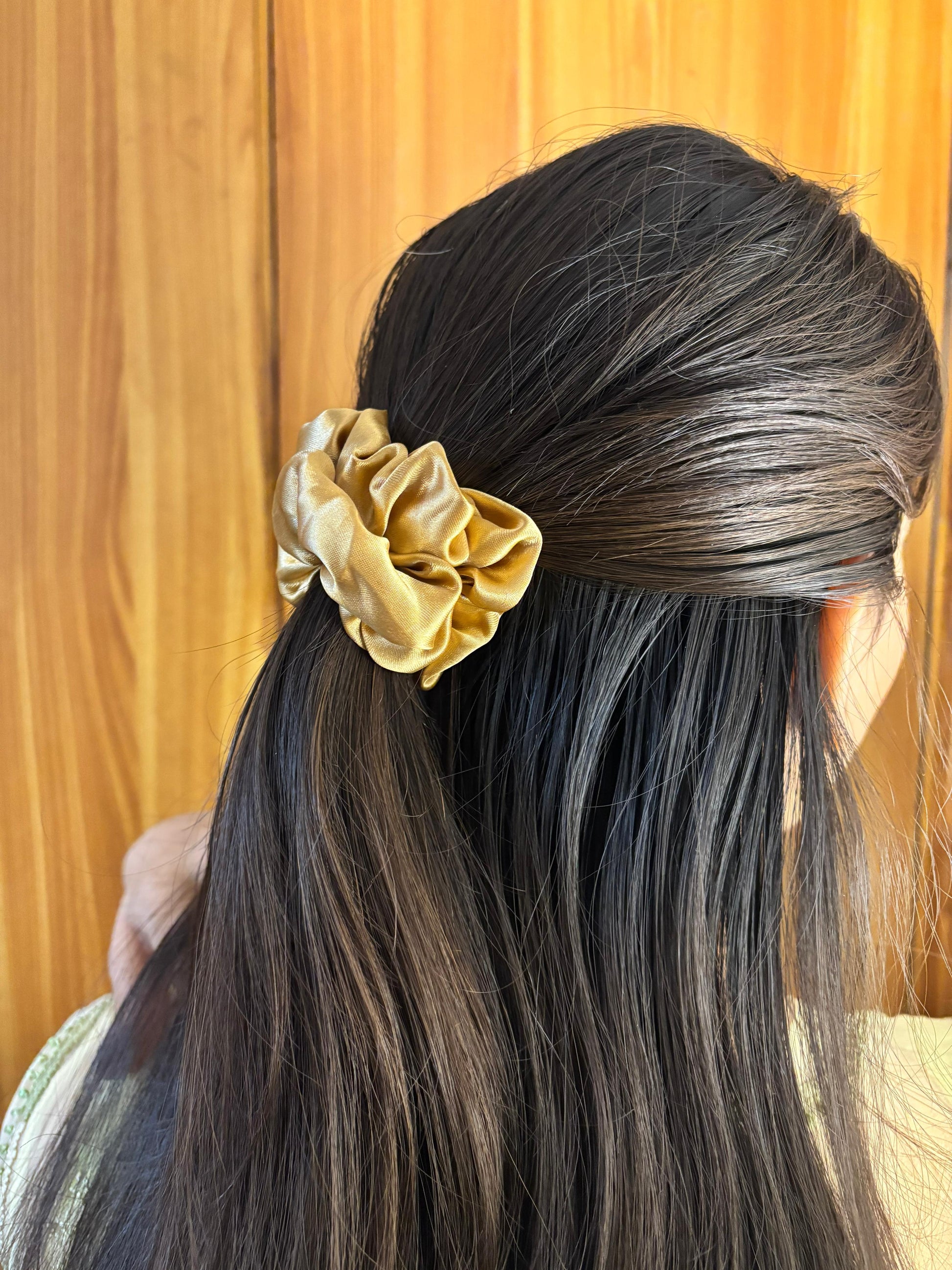 - Pink pearl scrunchie β Satin scrunchie with pearl embellishments.